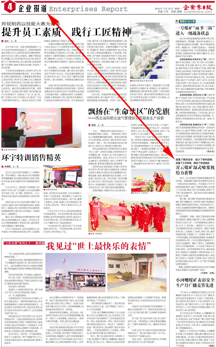 《企業家日報》2018年7月16日 4版企業報道: